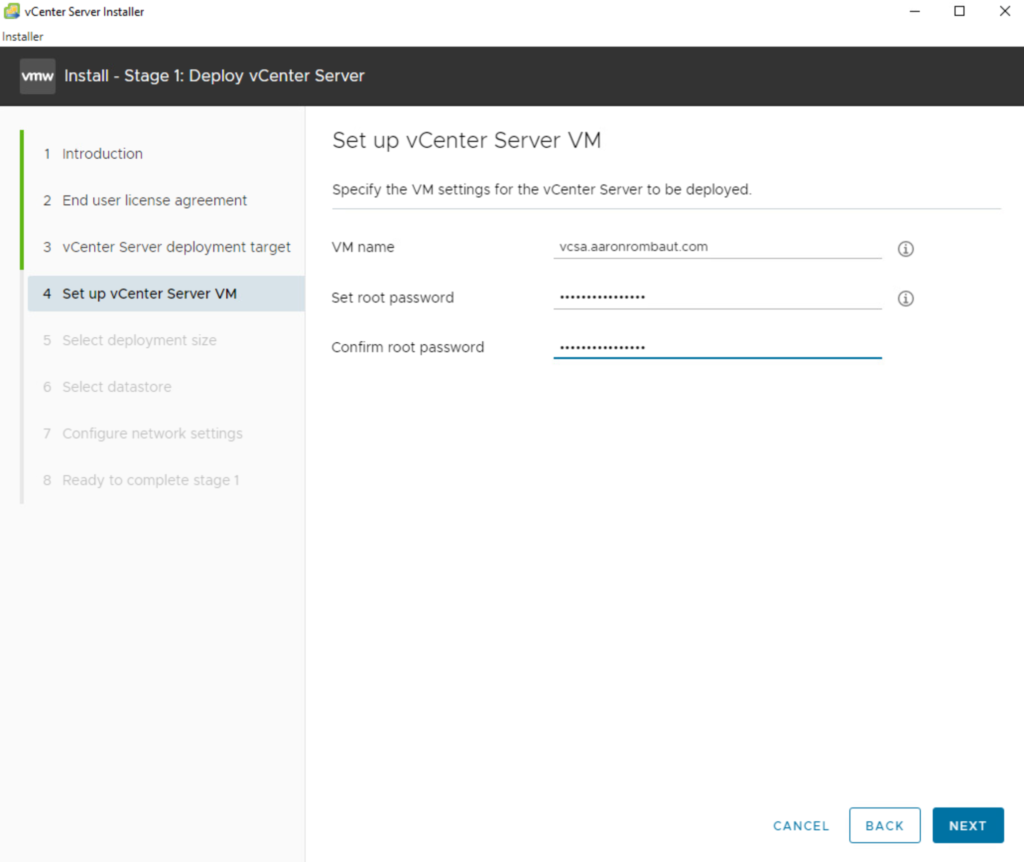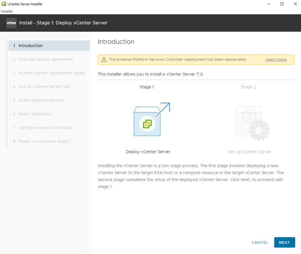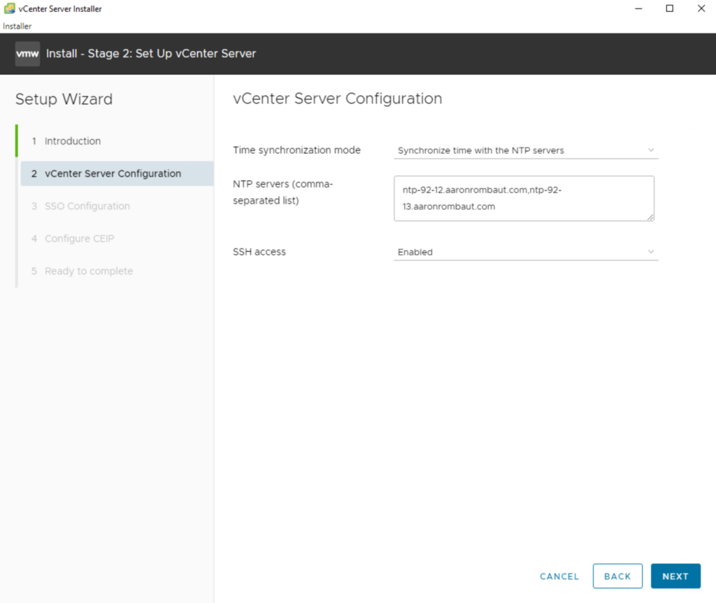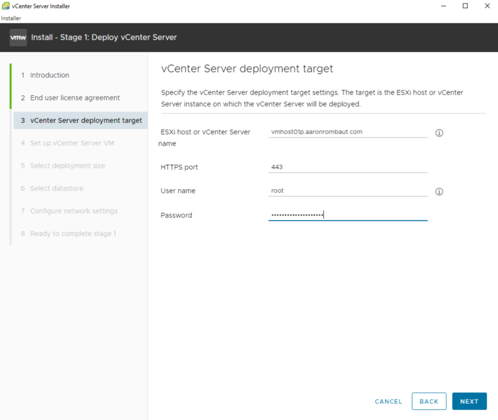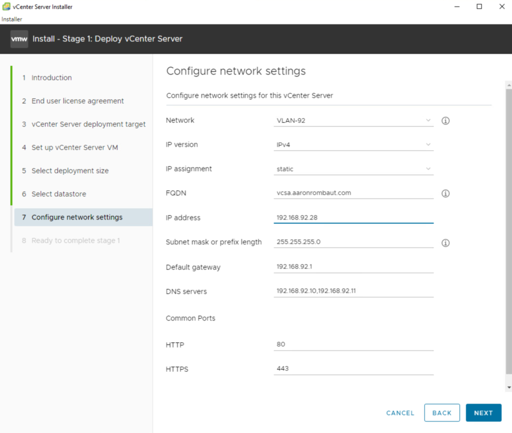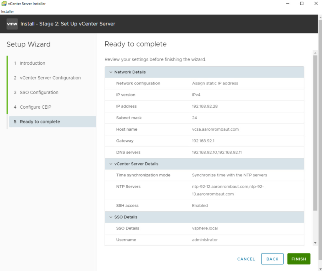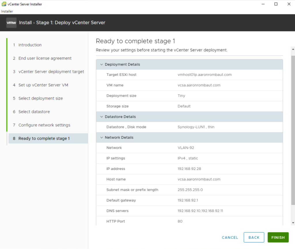 I am using VMware vSphere 7.0.3 for this lab. Before starting the deployment, ensure there are forward and reverse DNS records created for the ESXi host that vCenter will be installed on, the vCenter Server appliance itself, and optionally any NTP servers. Ideally, there should be localized NTP.