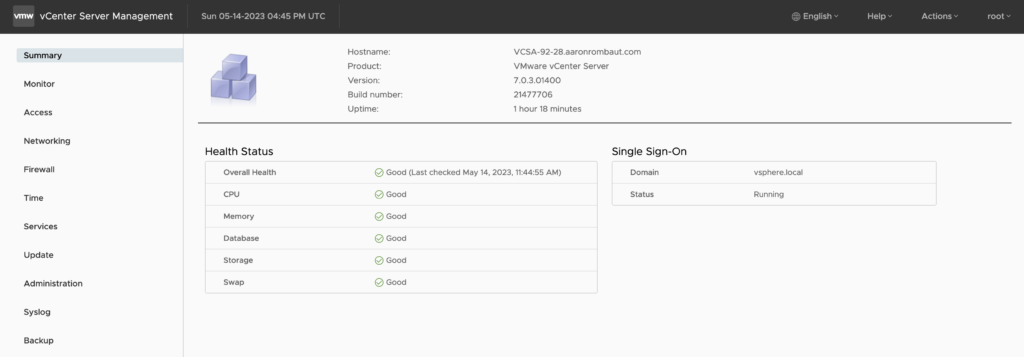 Log into the VMware vCenter Server Appliance (VCSA) with the [email protected] account.