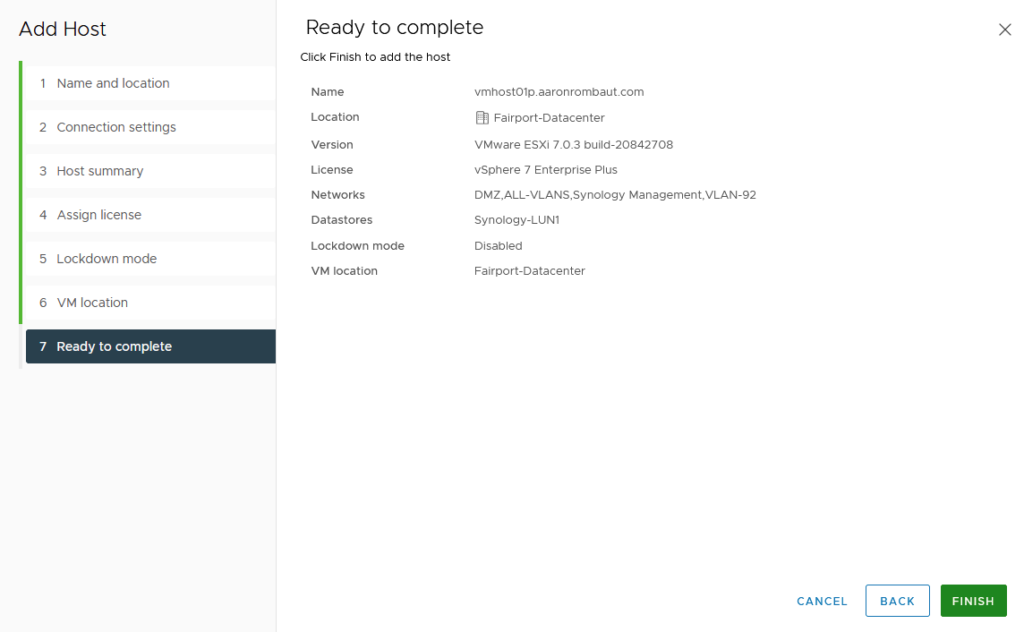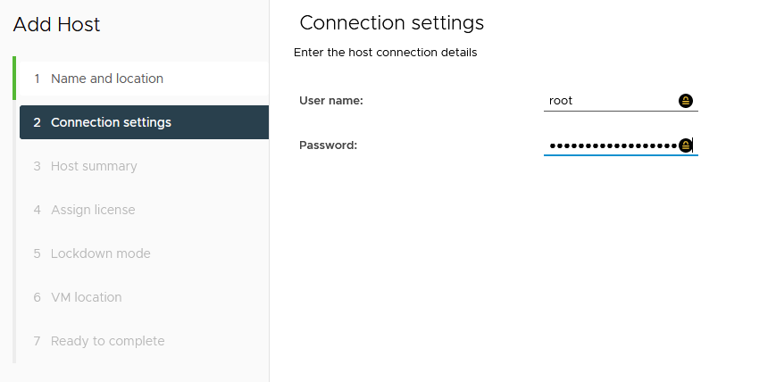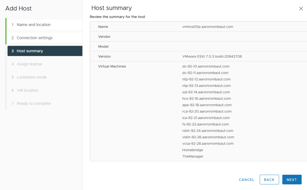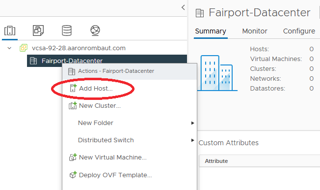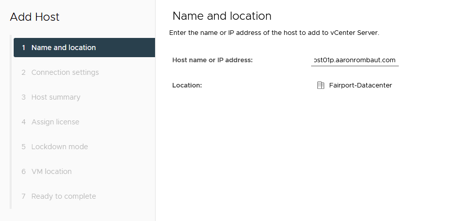 Now we will add a host. Be sure the ESXi hosts have forward and reverse DNS entries before proceeding!