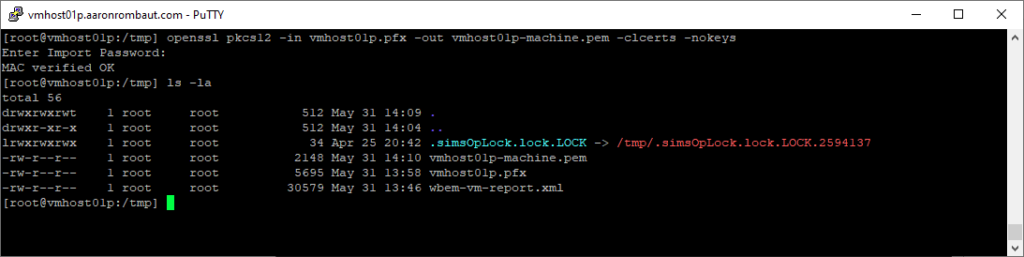 cp vmhost01p-machine.pem /etc/vmware/ssl/rui.crt