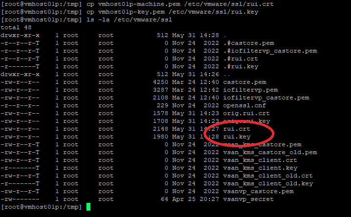 cp vmhost01p-key.pem /etc/vmware/ssl/rui.key