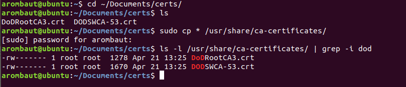Add DoD Certificates to the Ubuntu Certificate Trust