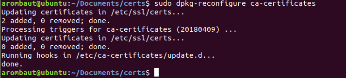 When you select <OK>, the Terminal will display the operation of adding the chosen certificates to the certificate store. Make sure the number of certificates you selected are added. In this case, there should be two.
