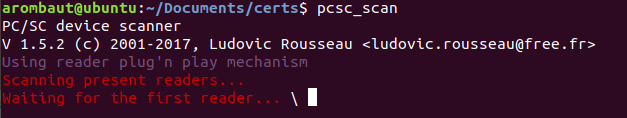 On the Terminal, type pcsc_scan. For the purposes of demonstration in this guide, I am going to post an image of before I connected my Smart Card reader so you can see the difference.
