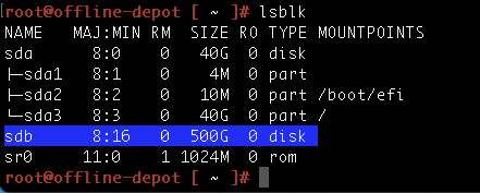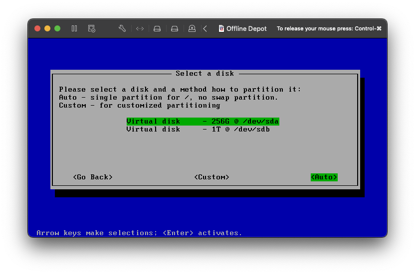 My plan is to install the operating system to /dev/sda and then use /dev/sdb for package storage.