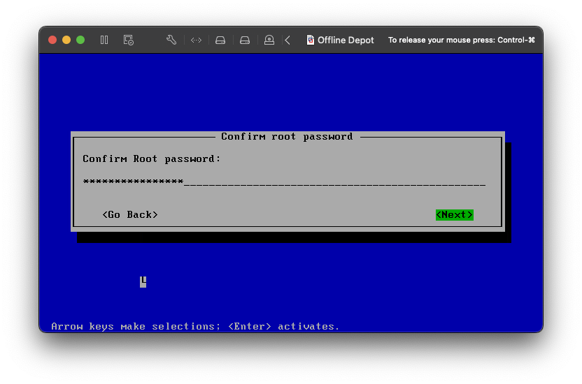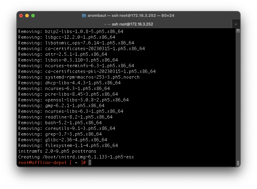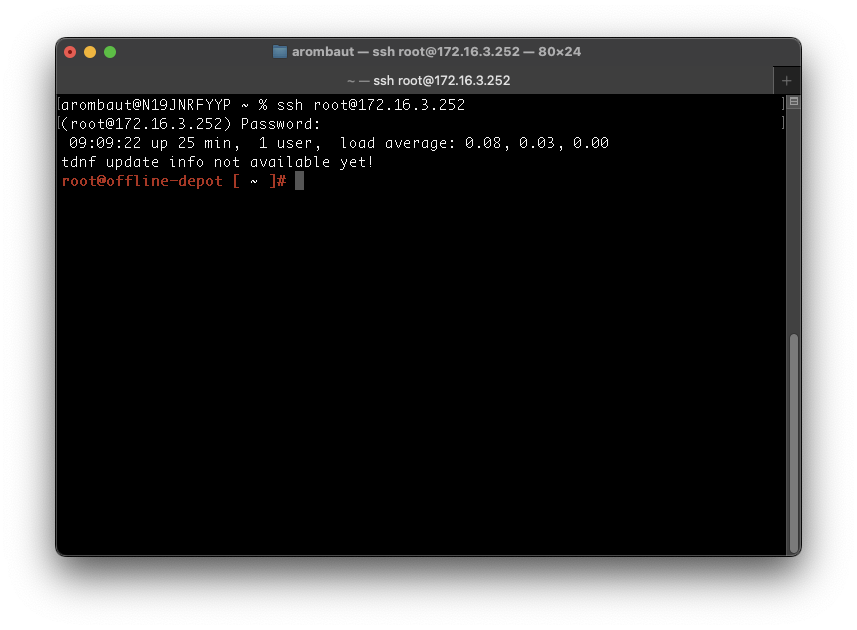 Now that we can log in with SSH, we can update the virtual machine. Log in as root to the virtual machine with SSH.