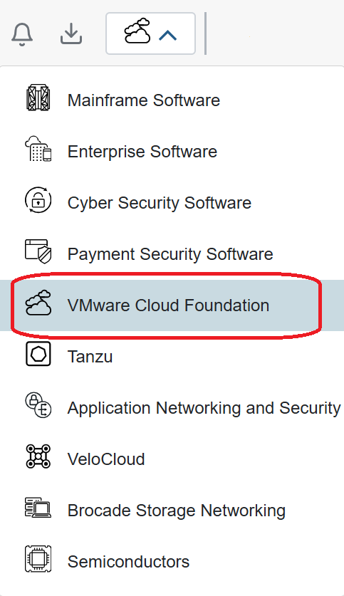 Log in to support.broadcom.com. Select VMware Cloud Foundation from the software selection category.