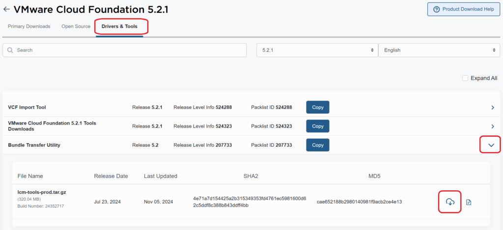 bundle-214558 | 5.2.1.0 | 2375.9 MB | SDDC_MANAGER_VCF-5.2.1.2-24690695 | PATCH