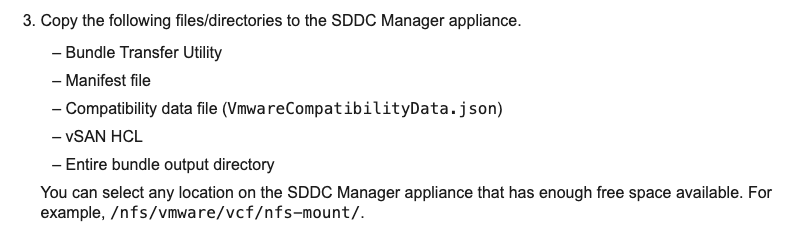 If your SDDC Manager appliance isn’t connected to an online or offline depot, the BTU allows you to download bundles on a separate, internet-connected system and manually upload them into SDDC Manager.