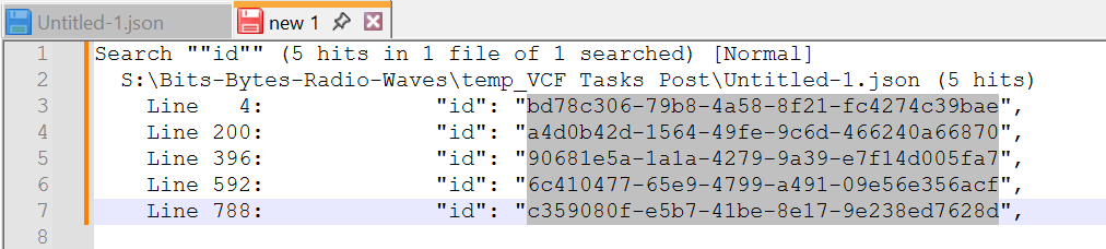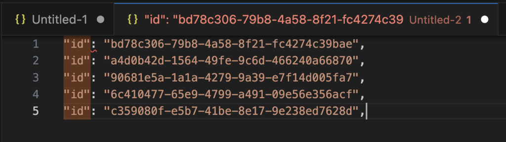 Press Ctrl + C to copy all of the “id” entries. Open a new tab and paste the contents with Ctrl + V.