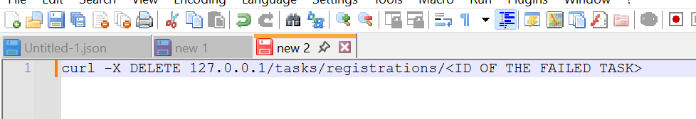 curl -X DELETE 127.0.0.1/tasks/registrations/<ID OF THE FAILED TASK>