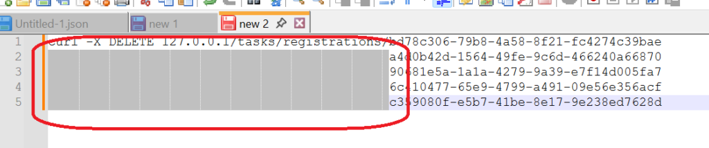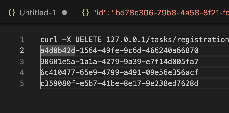 Copy the selected text. Switch over to the third tab, where the curl command was pasted. Select the <ID OF THE FAILED TASK> text and paste the contents of the clipboard.