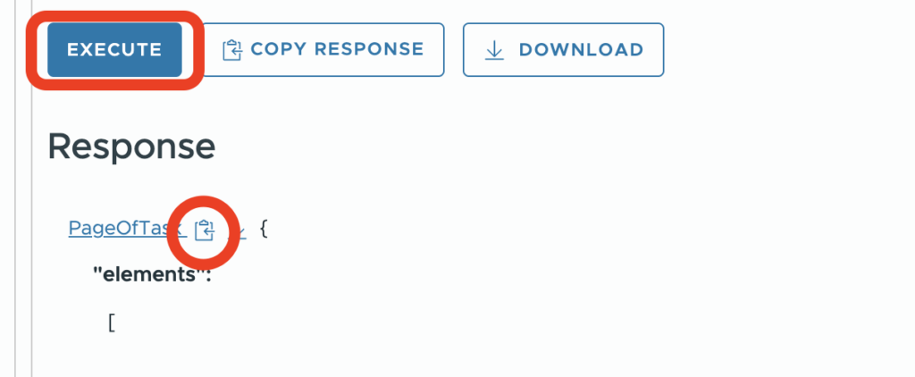 Scroll down further and select EXECUTE. Depending on how many failed tasks there are (or whatever status you are looking for), this may take a few moments. You should see a PageOfTask either way.