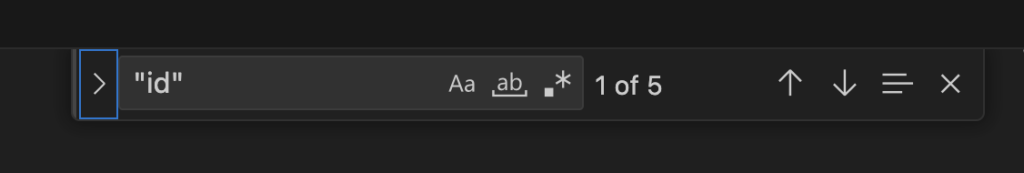 Open up a Find window (Edit > Find). Input “id” in the Find text box and press Enter or Return.