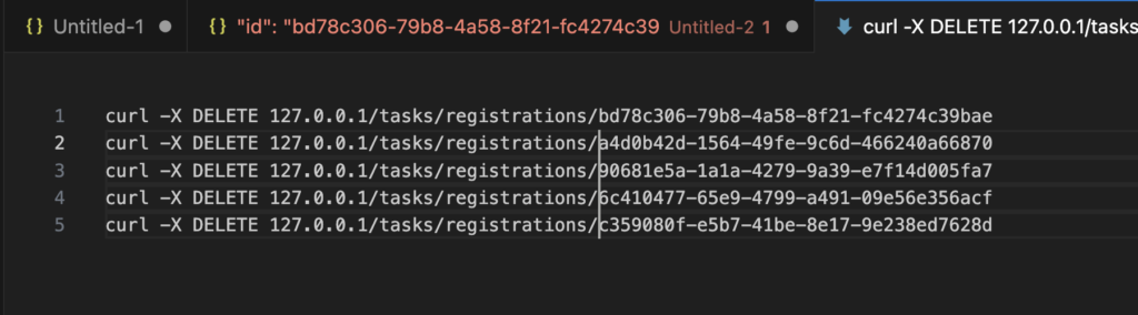 curl -X DELETE 127.0.0.1/tasks/registrations/