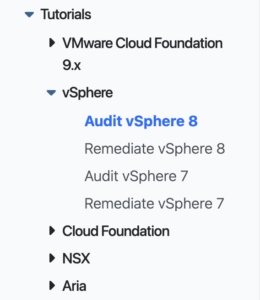 I am going to use a vSphere 8 lab vCenter as an example. Results will vary based on your organization’s configuration. The first place to start is the documentation. Navigate to the tutorials section and expand the appropriate section.